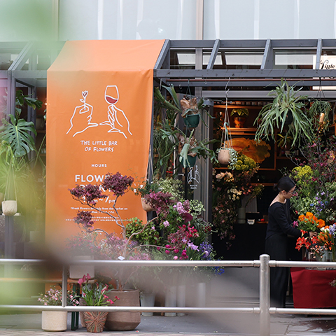 毎週金曜土曜の夜は花屋がクローズした後にワインスタンドに変貌。