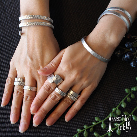 不変的な造形に独自のテクスチャをつけた真鍮、シルバーの装身具。そして、鉄に白釉をやき焼きつけた、どこかクラシカルな装身具も加わりました。