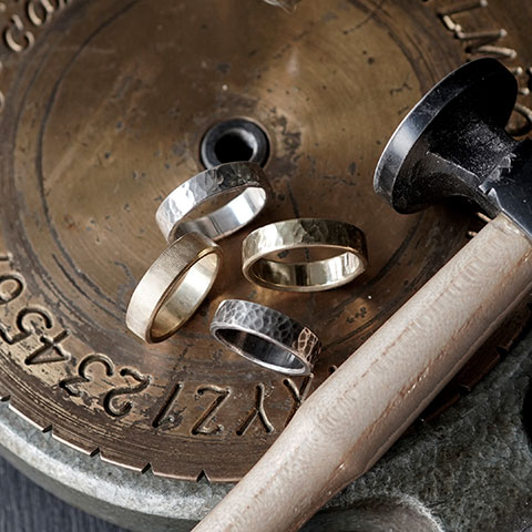 5mm幅の重厚な地金を使い、ガスバーナーとハンマーで仕上げる本格的な指輪作りのワークショップです。
