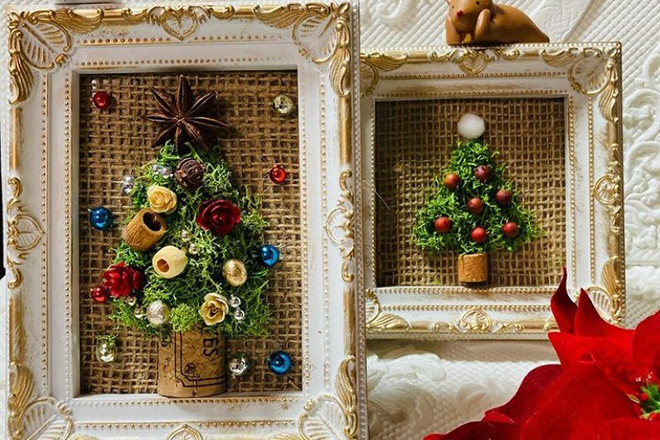 プリザーブドフラワー、ドライフラワーなど、さまざまな花材からお気に入りのものをお選びいただき、とっておきのクリスマスツリーをお作りいだけます。フレームを付けることで、お家の中でも一際目を引くインテリアになること間違いなしです。