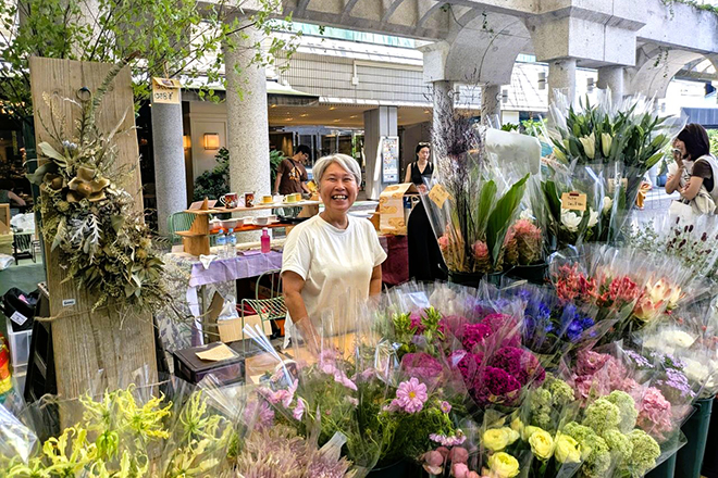 1束¥380(税込)・3束¥1,000(税込)と手に取りやすい価格で、新鮮なカジュアルフラワーを販売。季節の枝物やグリーンなど、花のある暮らしを提案します。日常に気軽に取り入れられるお花をお探しの方、花好き店主との会話もぜひお楽しみに。