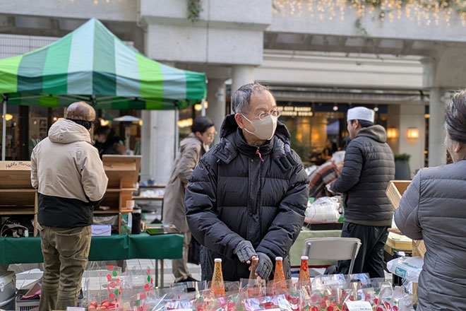 毎週土曜日に開催している人気のマルシェで新鮮な野菜や季節のフルーツが手に入ります。
