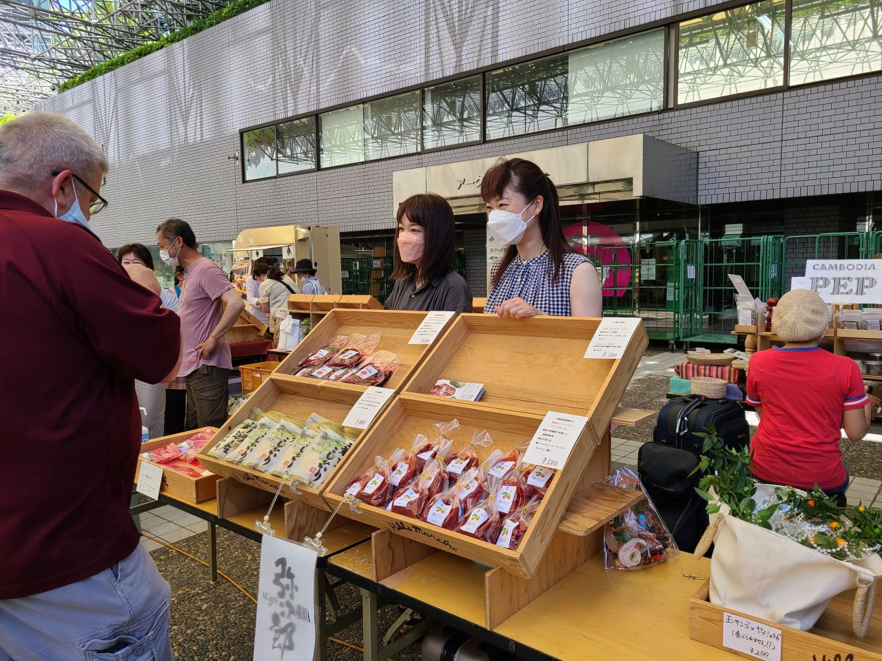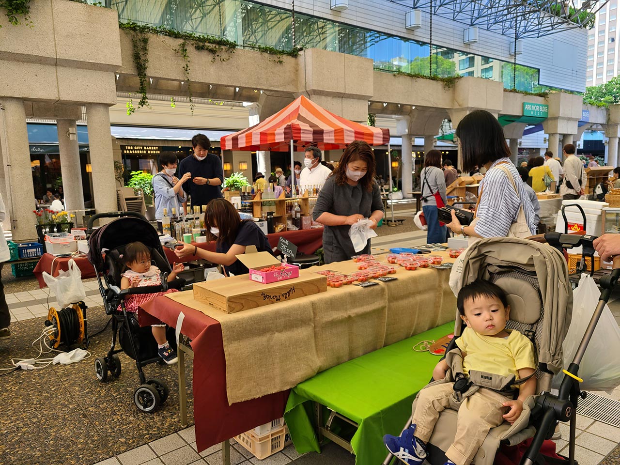 今回は生産者さんの初出店も2店舗あり、山梨県の果物生産者さん『MOMO日和』さんは採れたての桃をたくさんお持ちくださり、新潟県の『諸橋弥次郎農園』さんは、終了間際までメイン品目の枝豆が届かないというハプニングにも動じず、爽やかに販売くださいました。