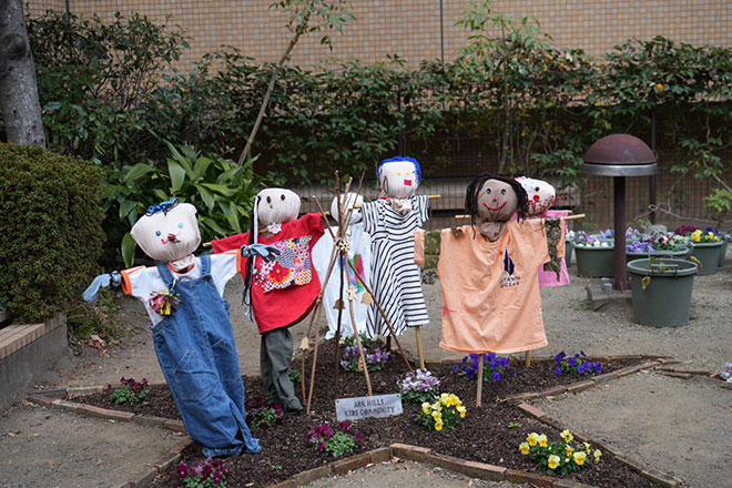 自分たちでつくった堆肥をつかって土づくり、お花を守るカカシを作ろう