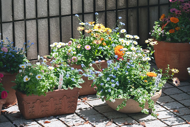 コンテナガーデンづくりとビオラの花を使って布に色を写してみよう